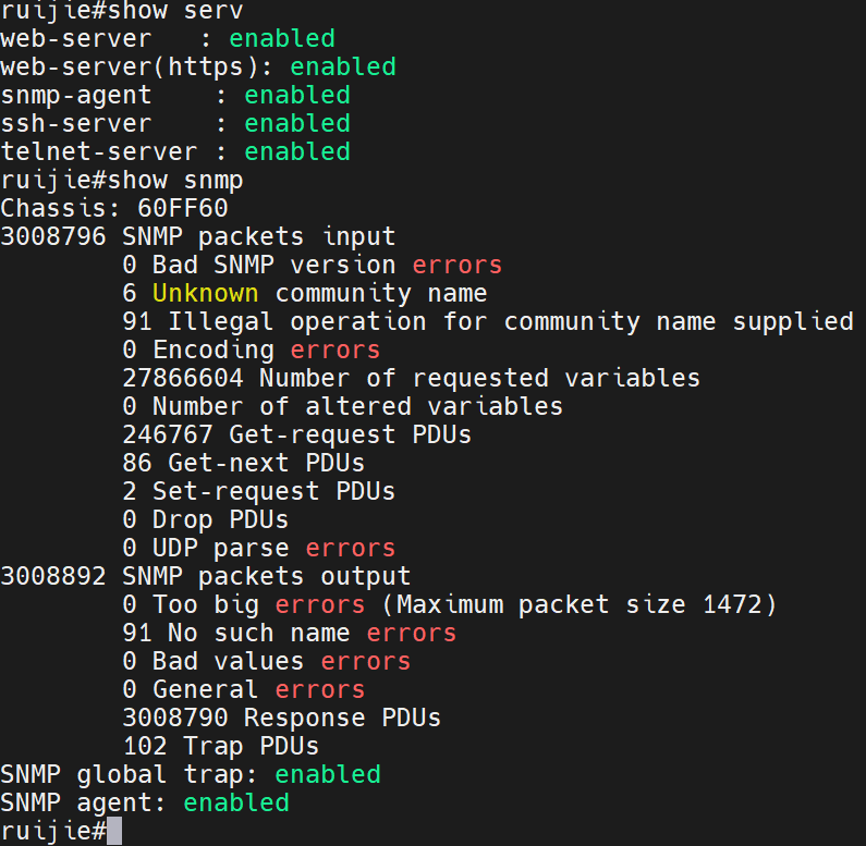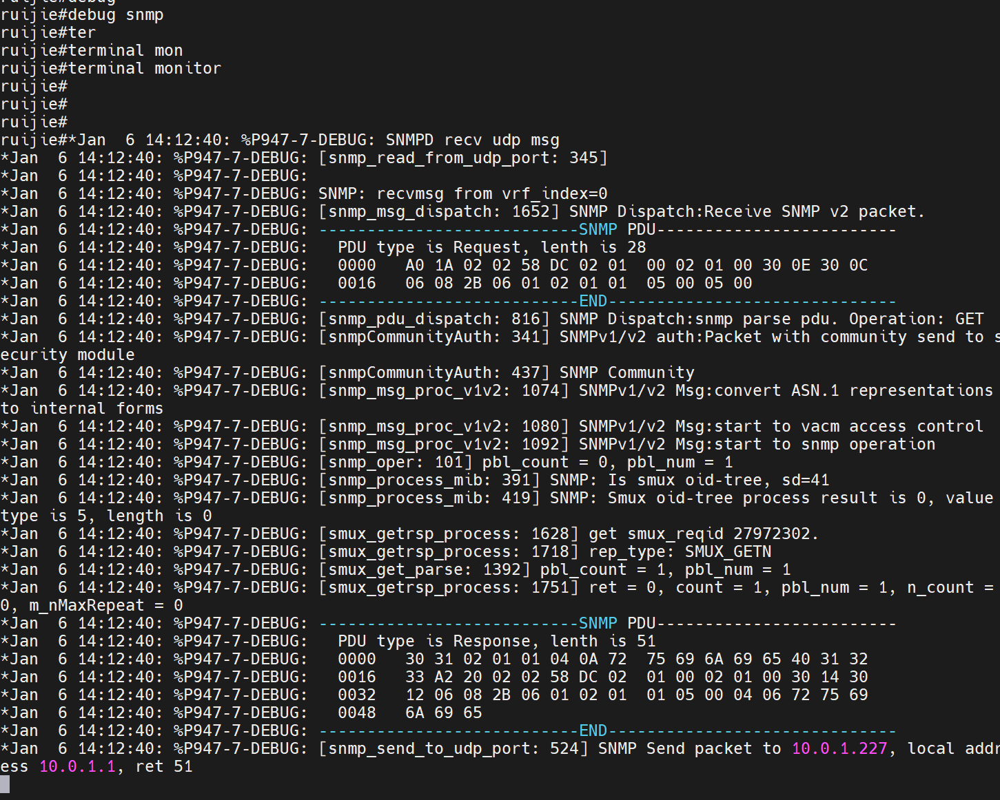 snmp-server community ruijie@123 rw SnmpGet v1.01
