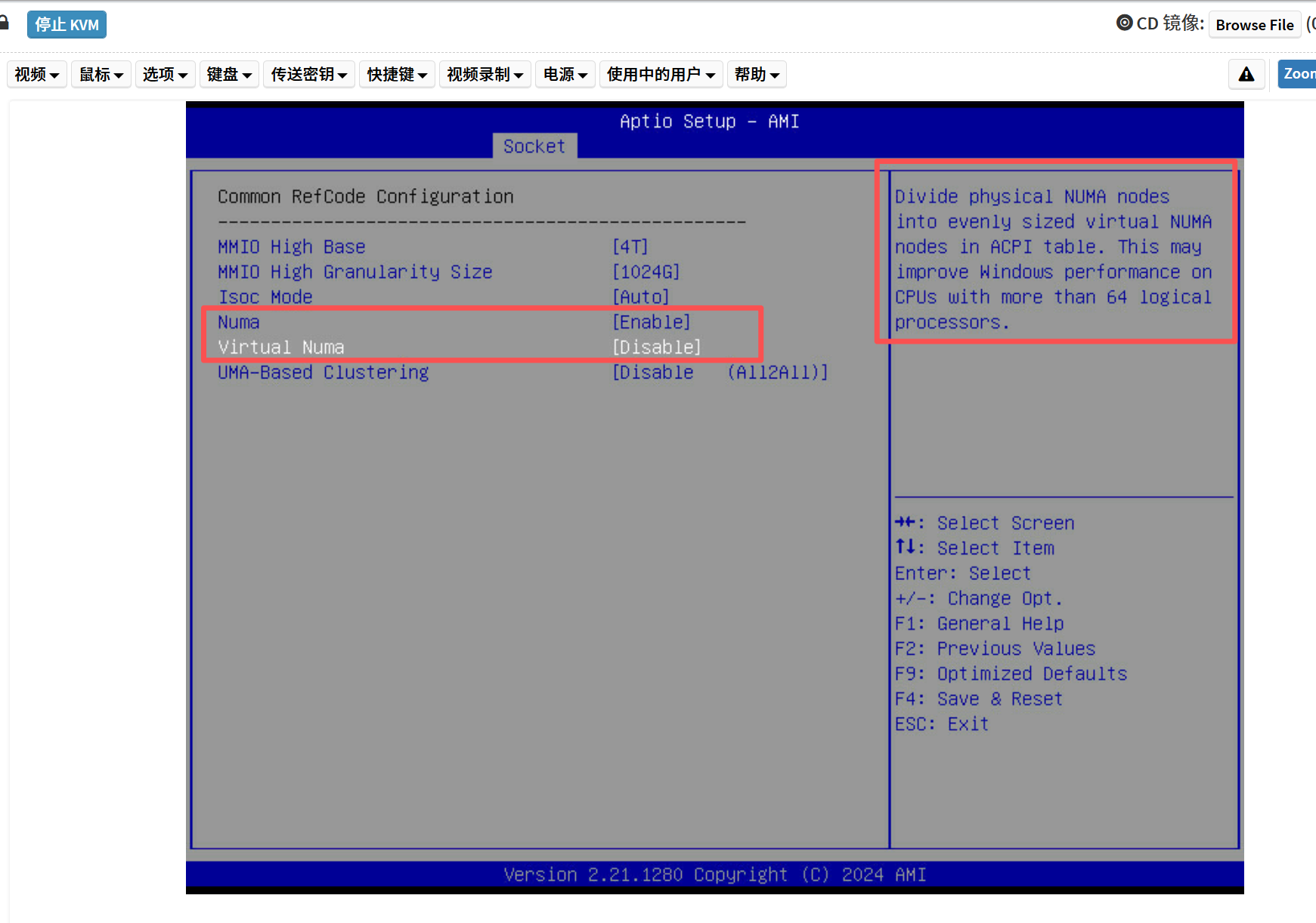 1、在bios中确认Numa 和 Virtual Numa相关功能已启用
